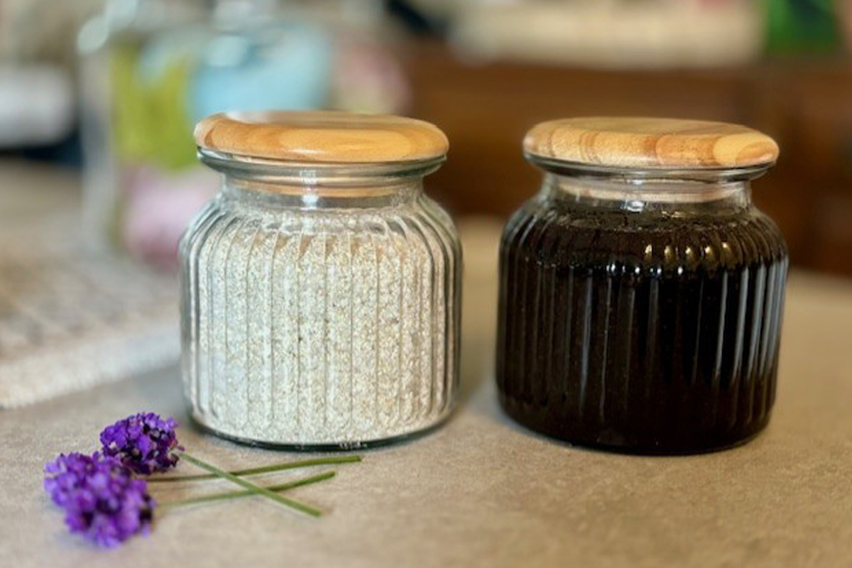 Luxury Bath Soak and Invigorating Shower Scrub. Treat yourself to some creative self-care!