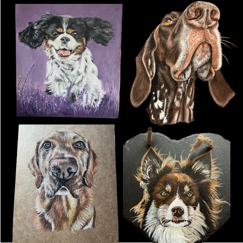 I’m Judi Duffy. I’ve been painting dogs and cats since I was a teenager – but it was only after a move to Norfolk, that I decided to paint pet portraits full time. I create pictures in pastel, oils, A6 cards in pastel and my most popular these slate hearts hand painted in acrylics.